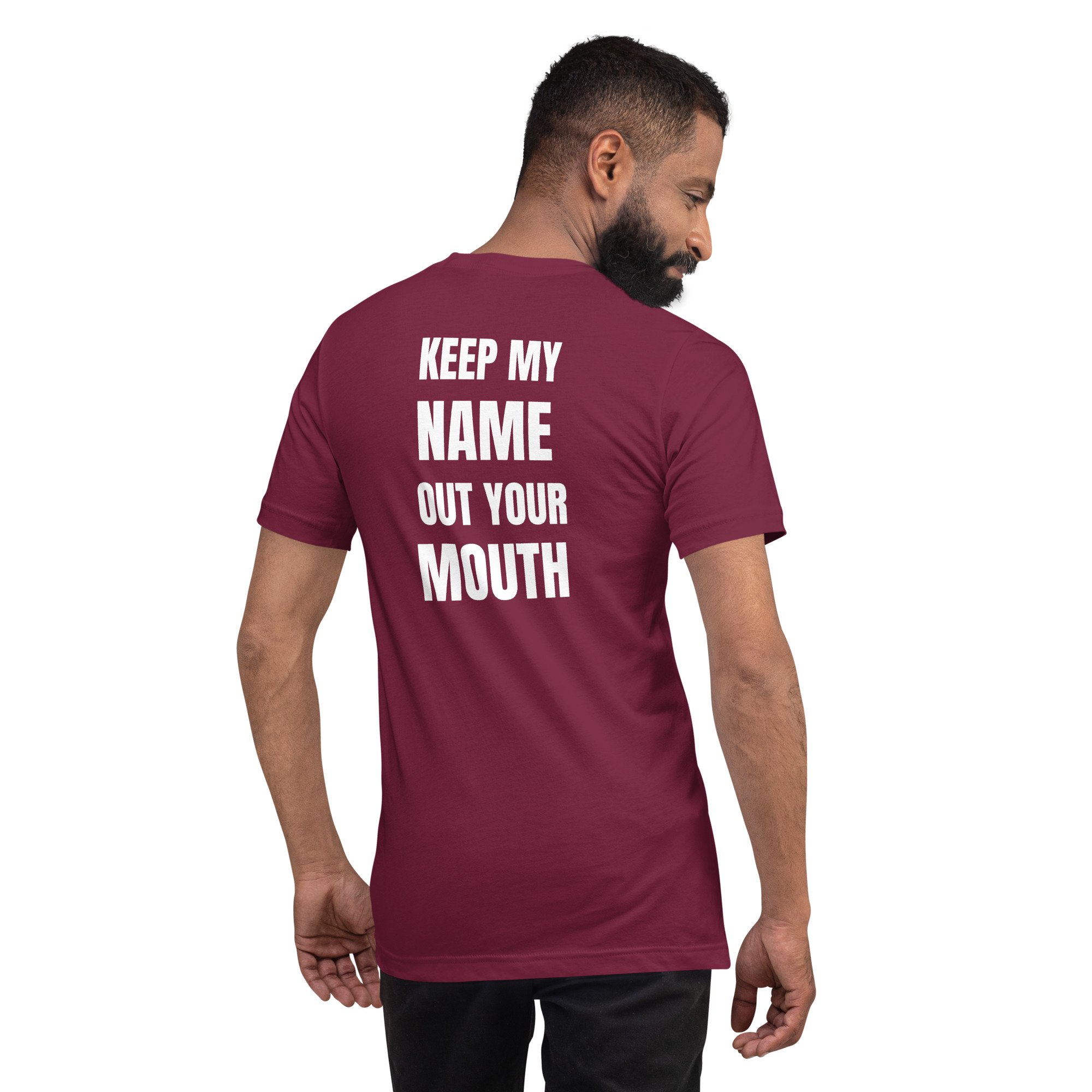 Keep My Name Out Your Mouth. We've all had something we wanted to say to someone rather you were at work, in public anywhere. However saying it out loud isn't always an option. Back Talk lets you wear what you want to say loud clear and right on your back. Our tee shirts are: